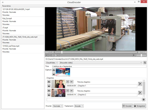 A partir des contenus vidéo produits par la chaine, CloudEncoder permet de titrer et chapitrer chaque contenu. Il permet également de créer les captures nécessaires à la publication sur le site internet.